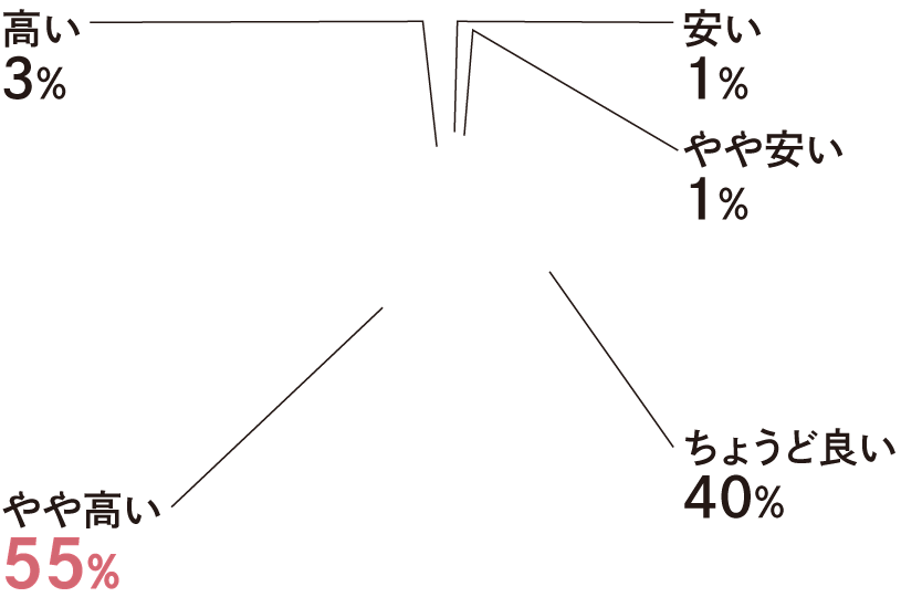 「やや高い」の回答が約5割で最も多い結果でした。次に多いのは「ちょうど良い」の回答でした。