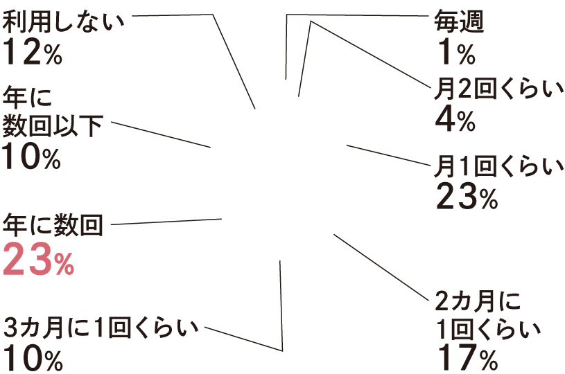 「年に数回」の回答が最も多く、年に数回以上利用される回答の合計は約8割でした。